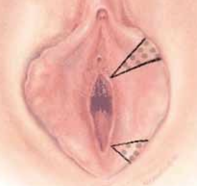 L’origine de l’hypertrophie des petites lèvres est parfois congénitale. Dans la majorité des cas, elles se développent excessivement lors de la puberté ou sont secondaires et aggravées par les accouchements. On peut voir aussi des patientes d’origine africaine chez lesquelles, dès la puberté, on a tiré sur les petites lèvres pour les rendre plus longues et attirantes pour le futur époux [1]. À la ménopause, les petites lèvres tendent plutôt à s’atrophier et se cacher entre les grandes lèvres.